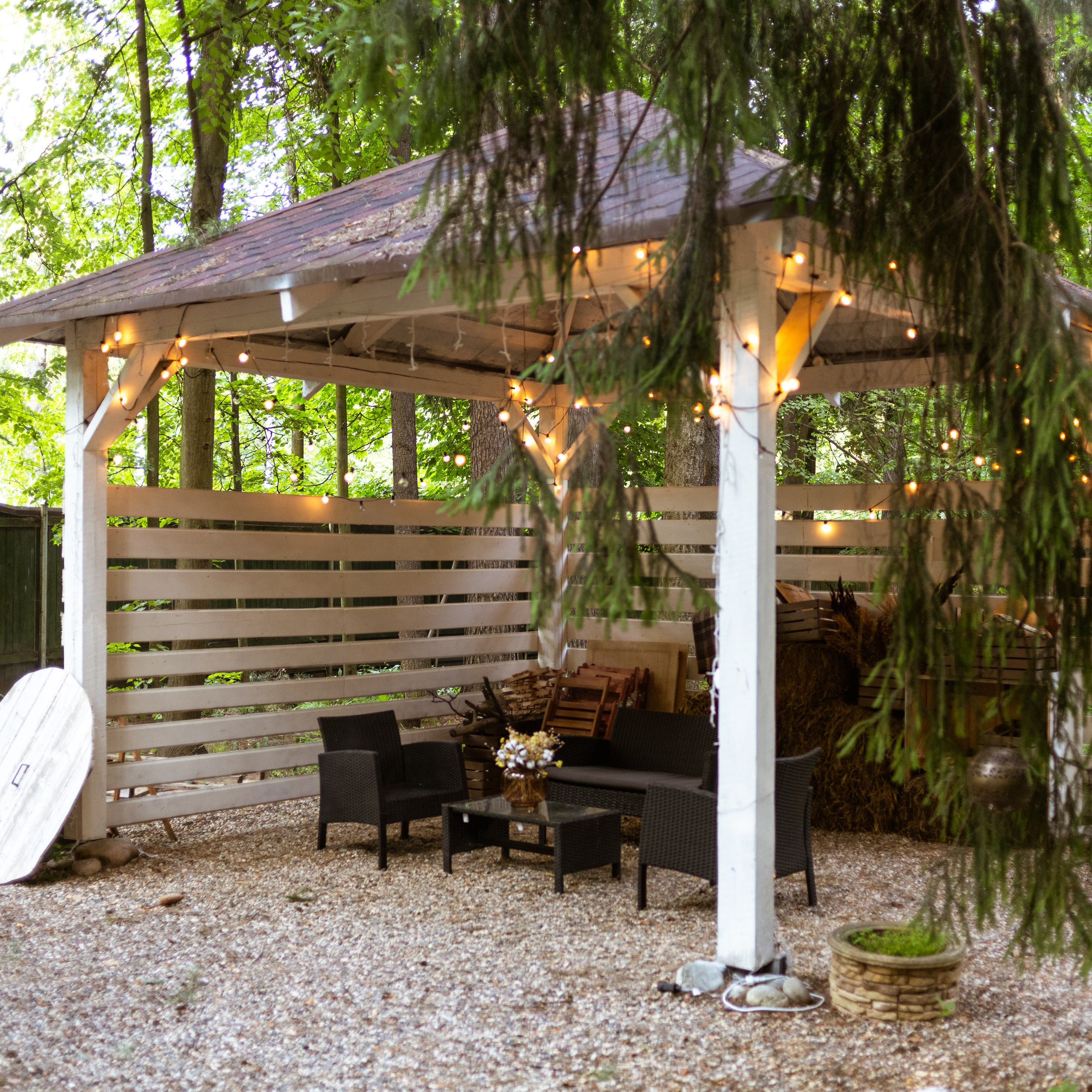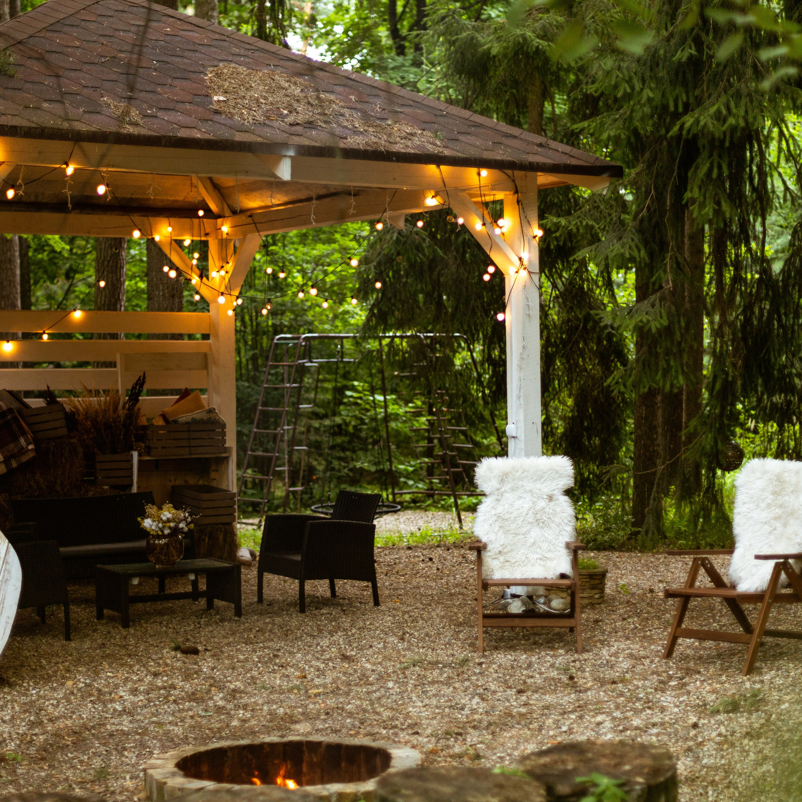 Просторная беседка с костровой чашей