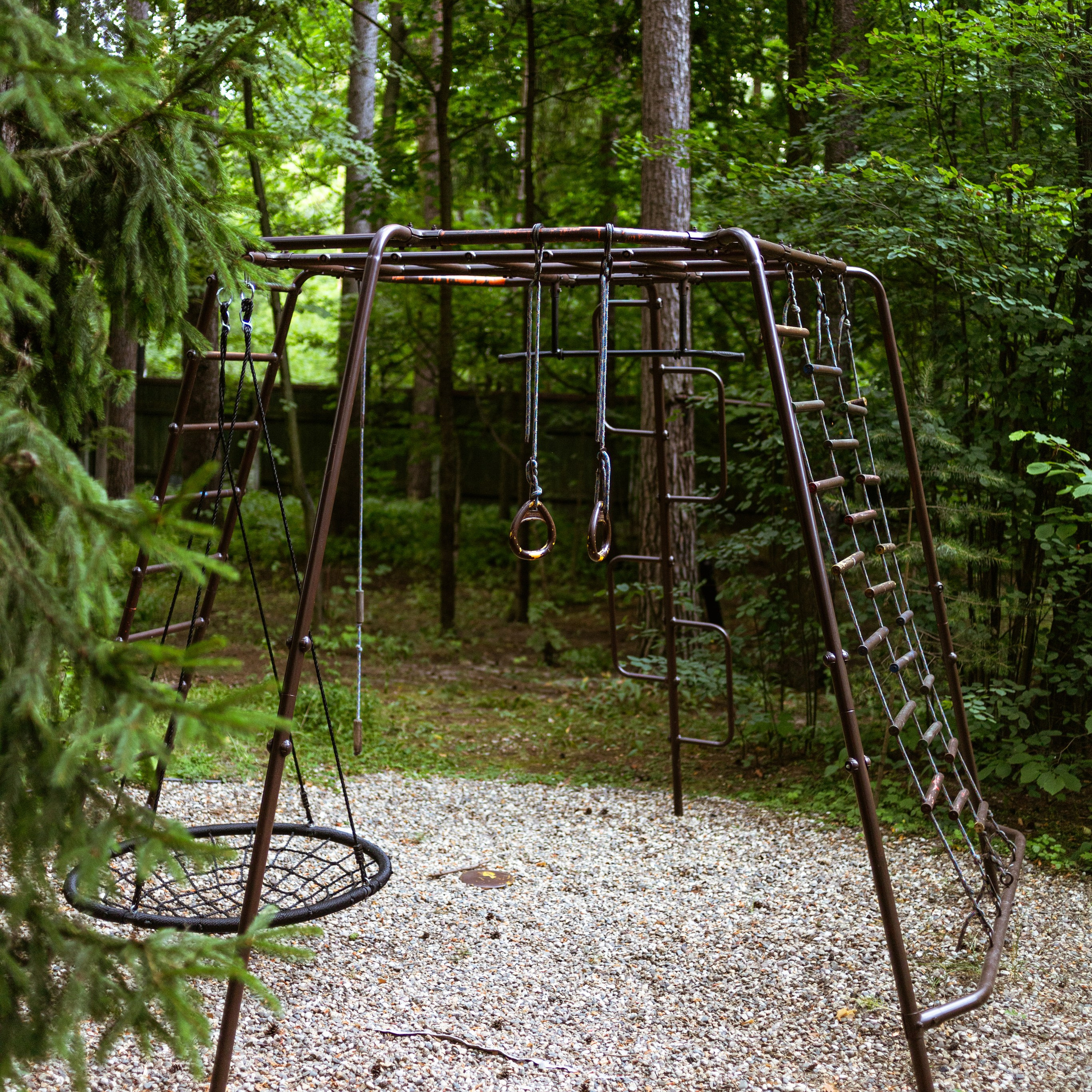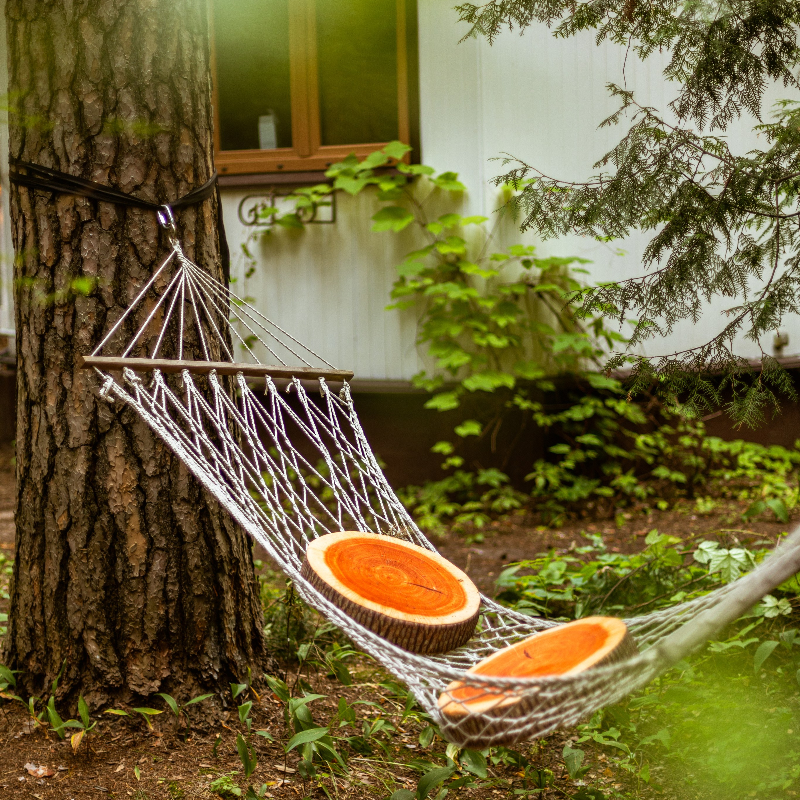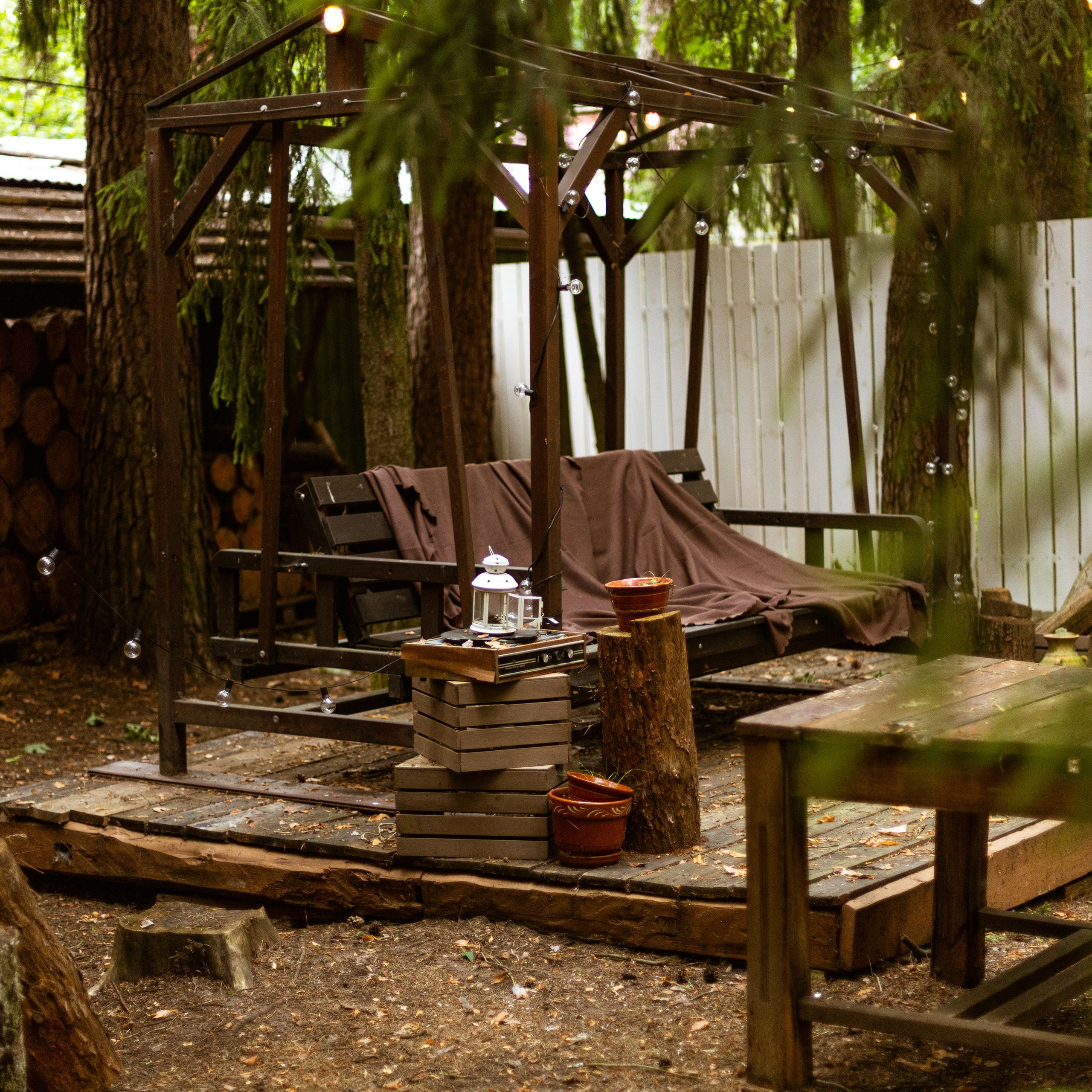 Семейные качели и гаммак в зоне дровника